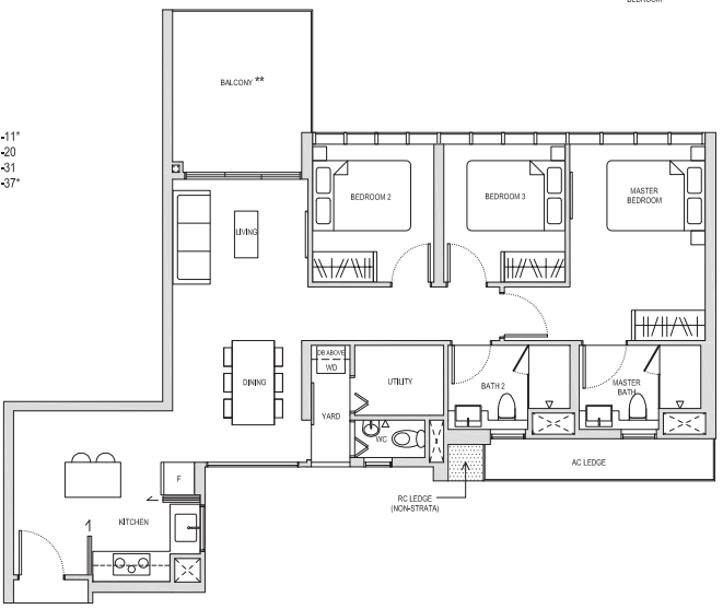 99 Yrs Leasehold 1052 Units TOP Dec 2024 Height 14 Storey 1 Bed 1 + Study 2 Bed 2 + Study 2 Bed Premium 2 Bed Premium+Study 3 Bed 3 Bed Premium 3 Bed Deluxe 4 Bed+ Study Penthouse 4 Bed Strata 5 Bed Strata