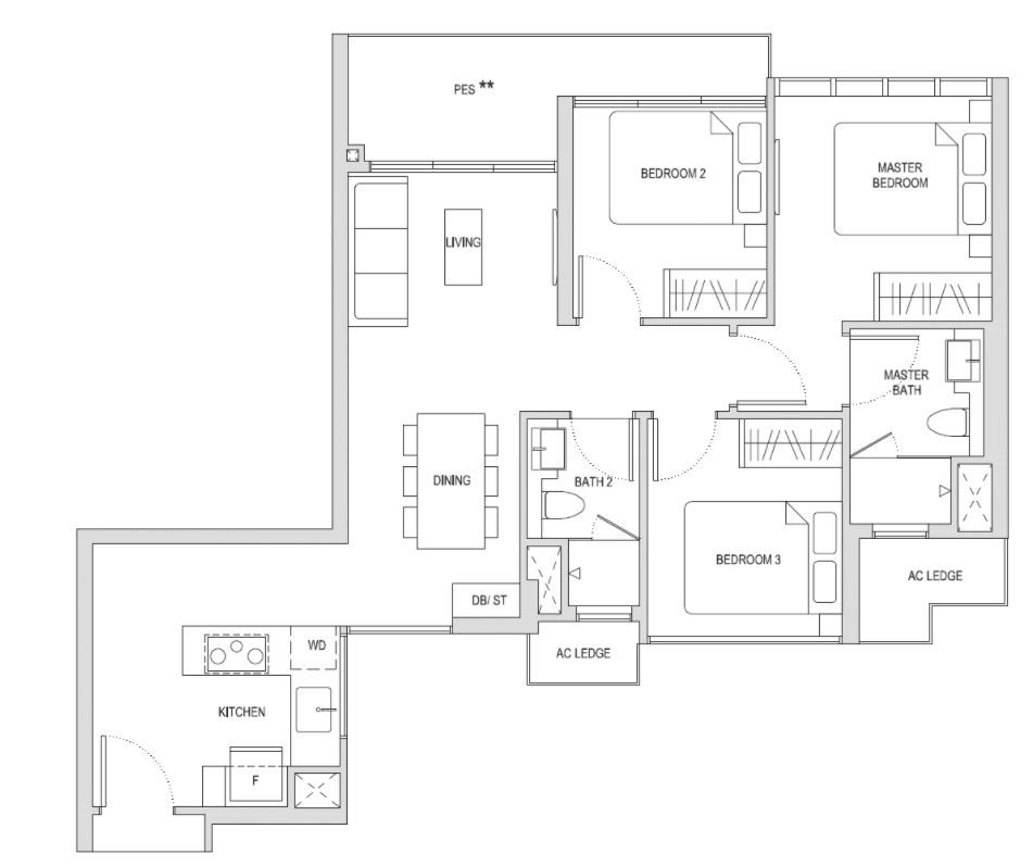 3 Bedroom (D) | 1076 - 1249 | 110 |