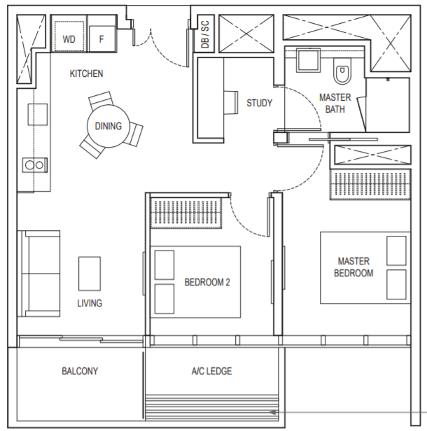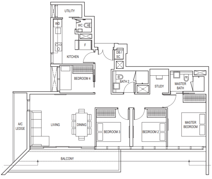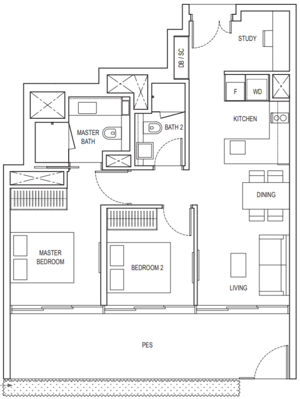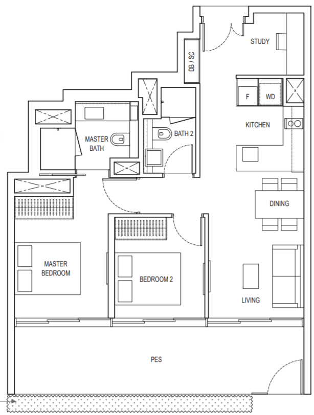 2 Bedroom+ Study | 678 - 883 | 120 |