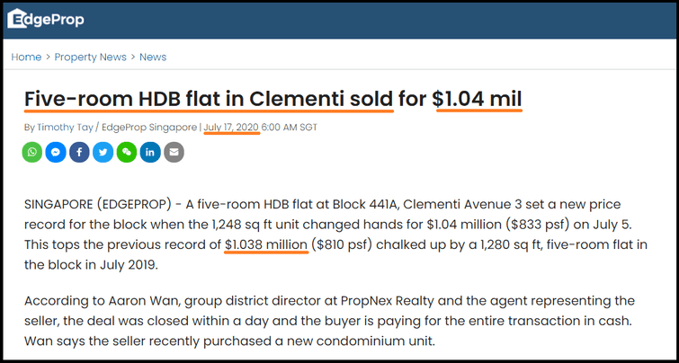 Hottest Location Demand in Singapore ! NEARBY HDB exceeds $1 million transaction !