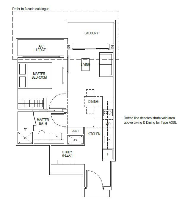 1 Bedroom + Study | 495 - 667 | 102 |