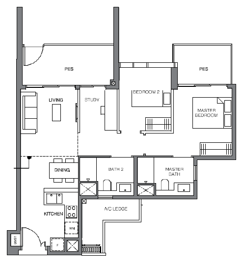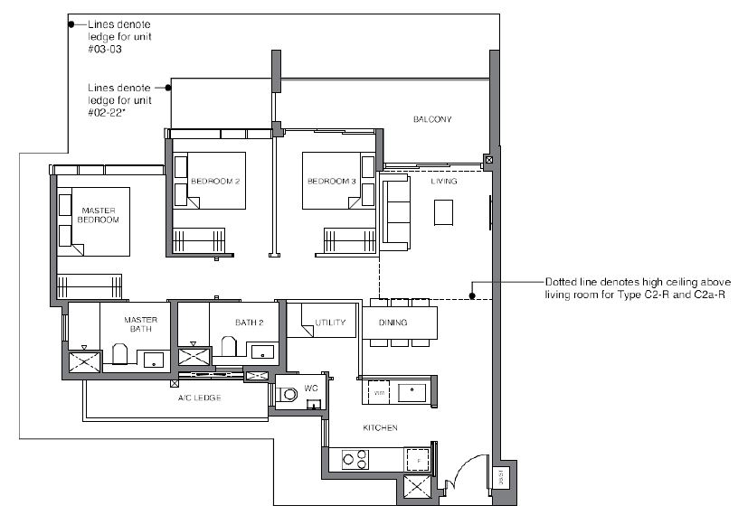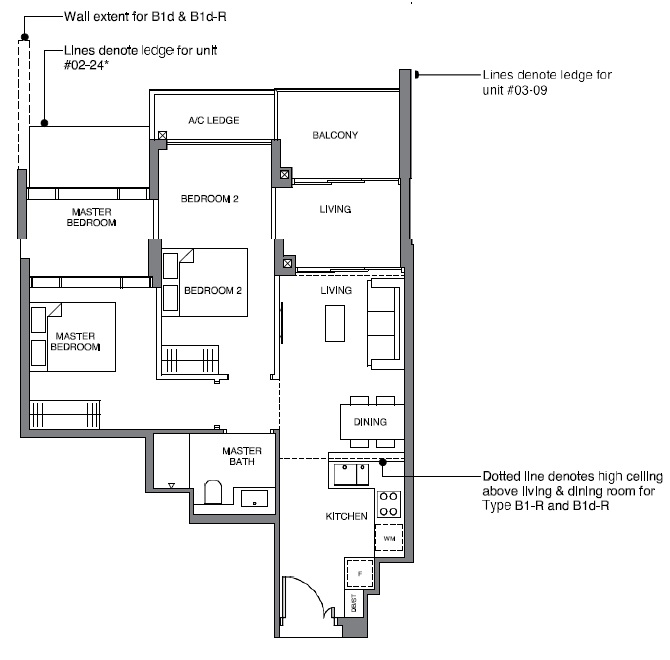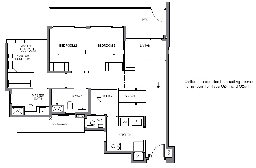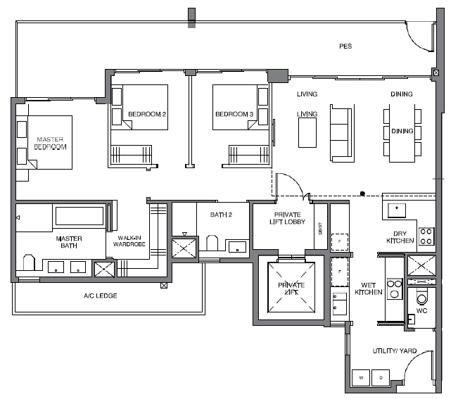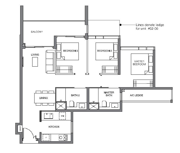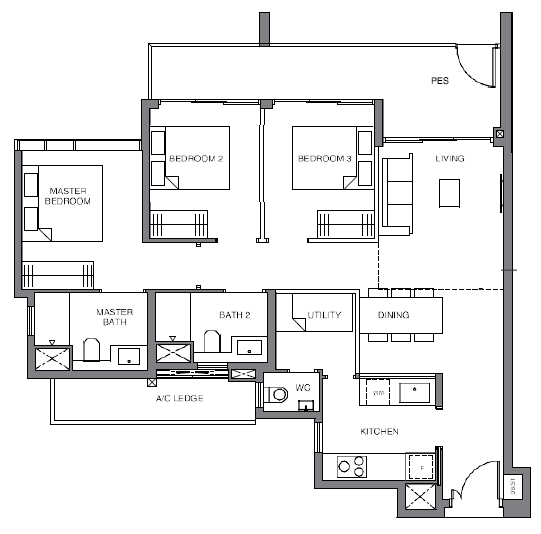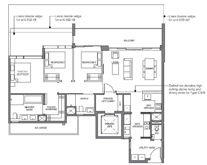 3 Bedroom (E) | 1044 - 1163 | 45 |