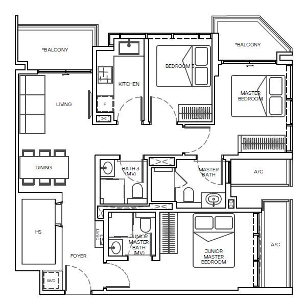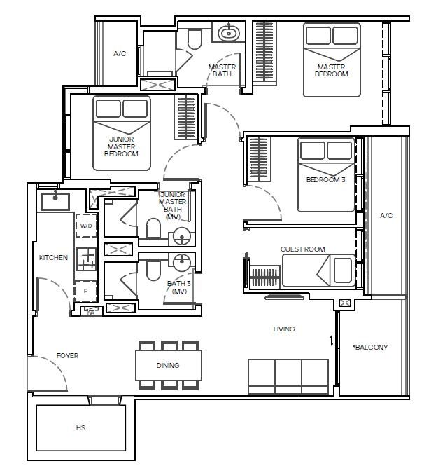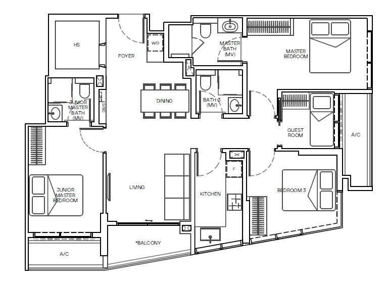 3 Bedroom + Guest | 1023 - 1184 | 17 |
