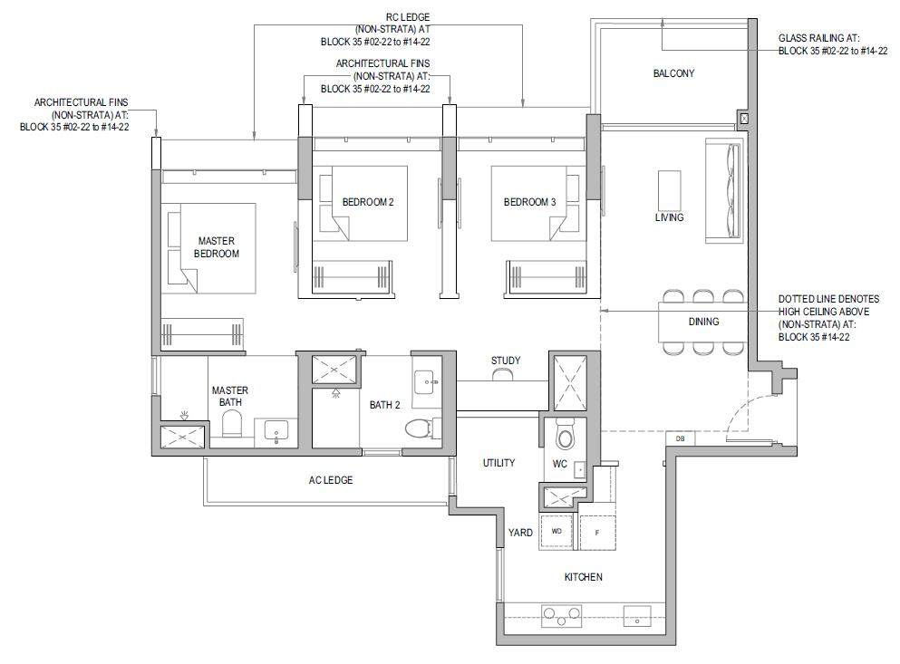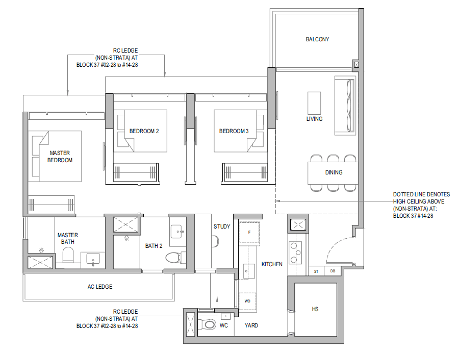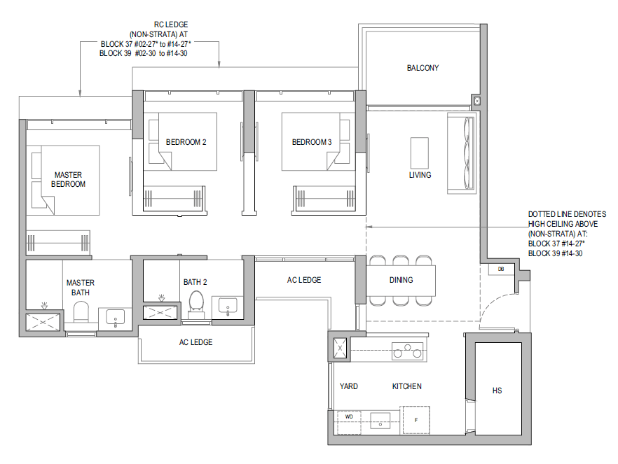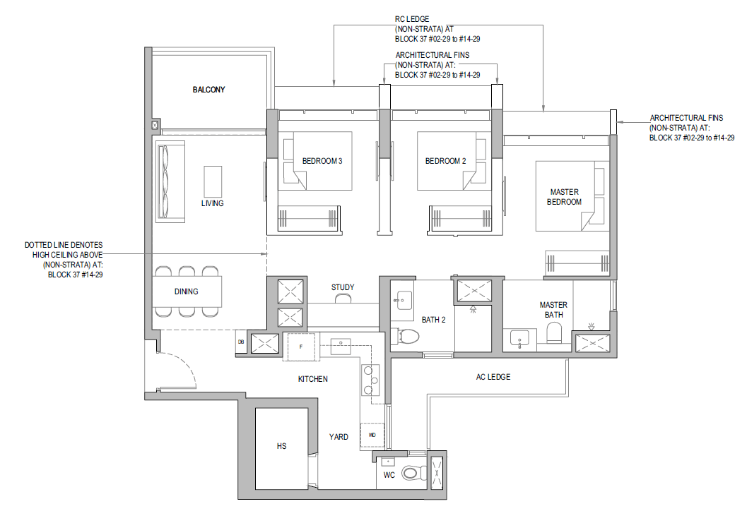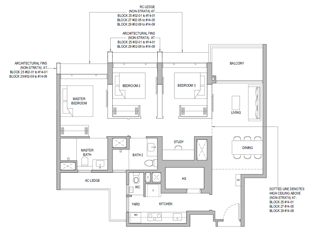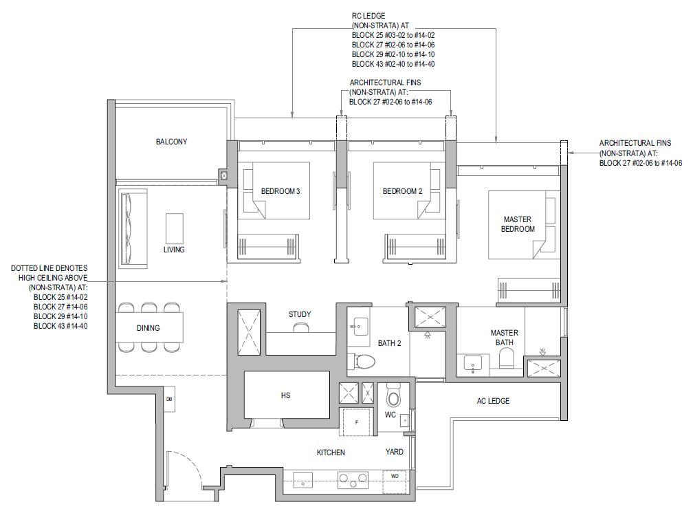 3 Bedroom + Yard + Study | 797 | 20 |