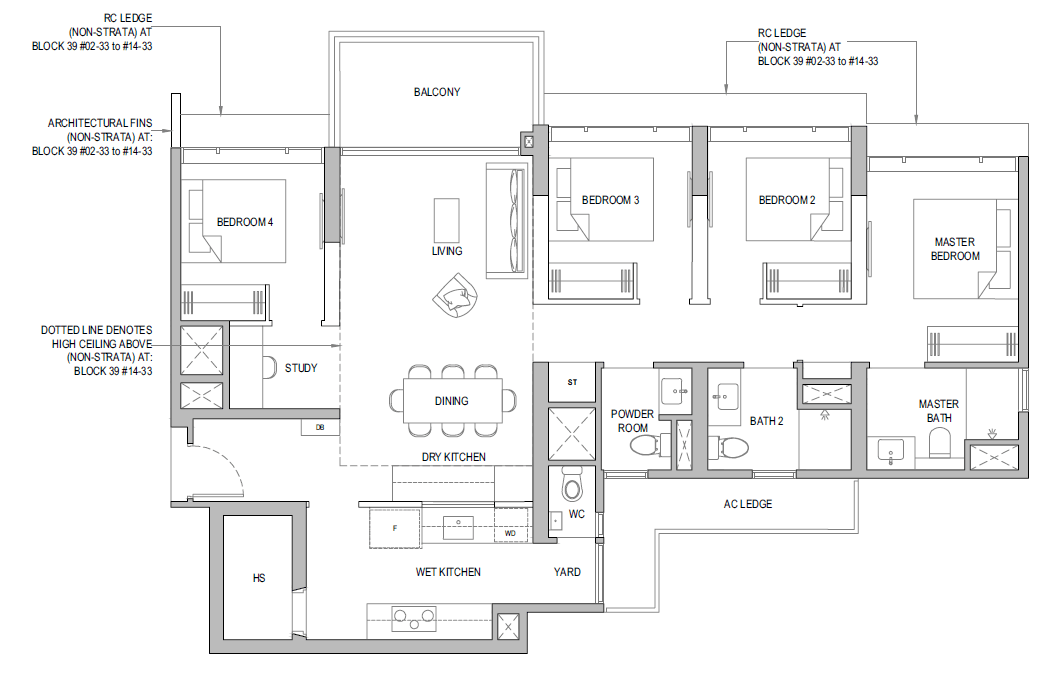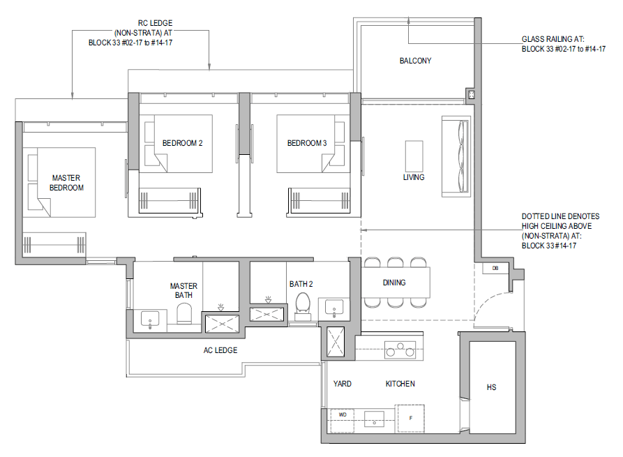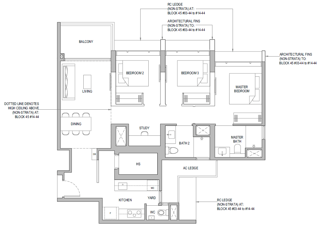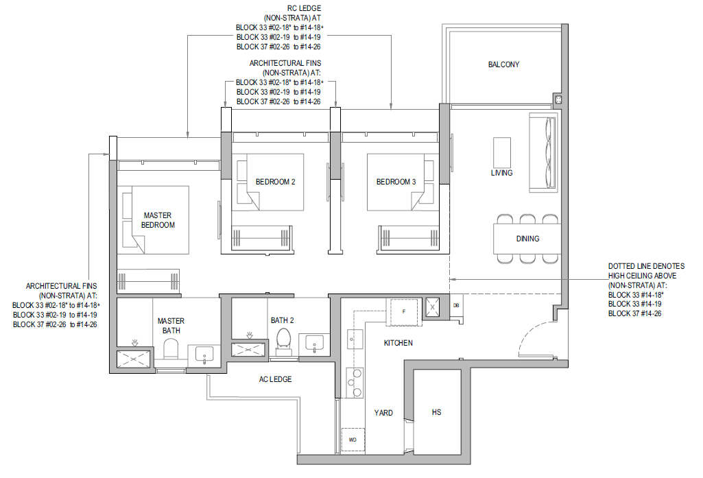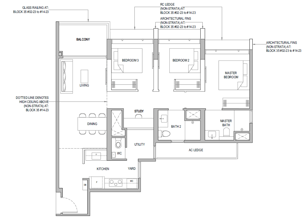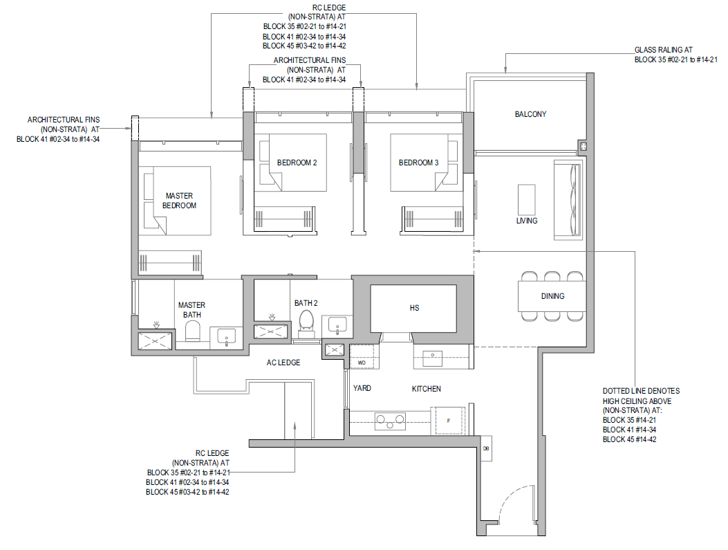 3 Bedroom + Yard + Study | 797 | 20 |