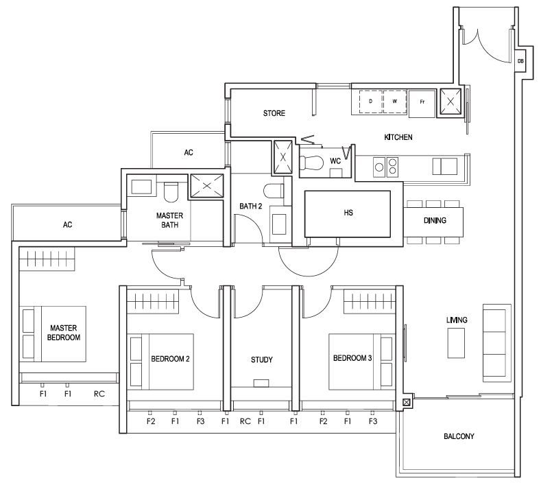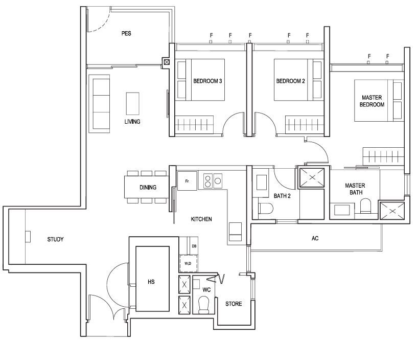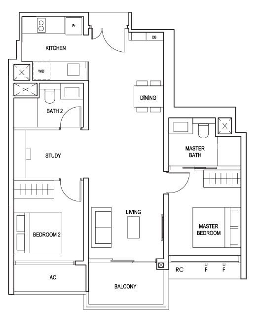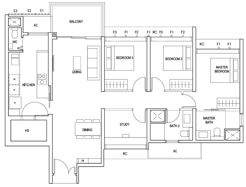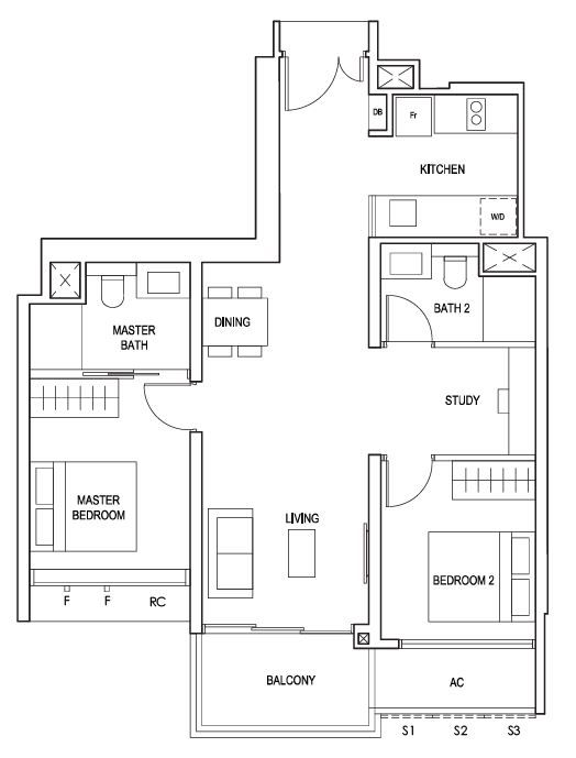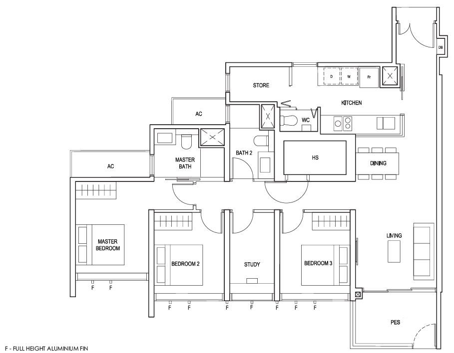 3 Bedroom + Study | 1173 - 1184 | 54 |