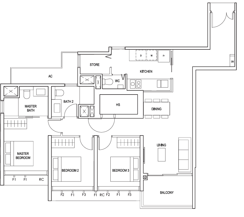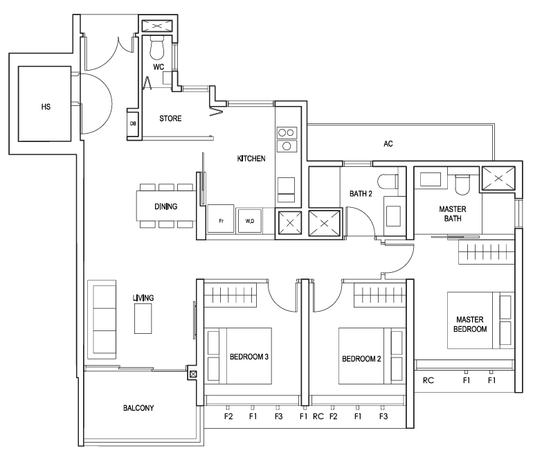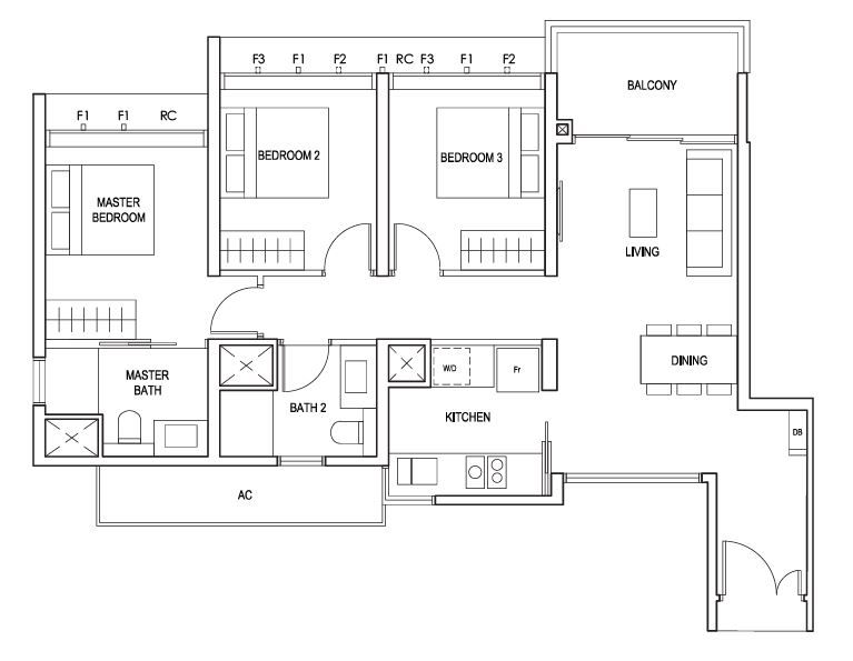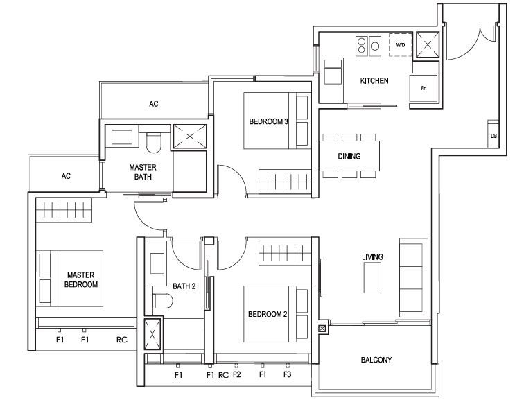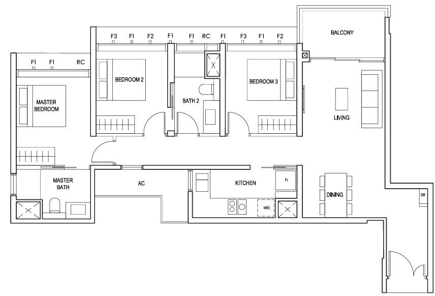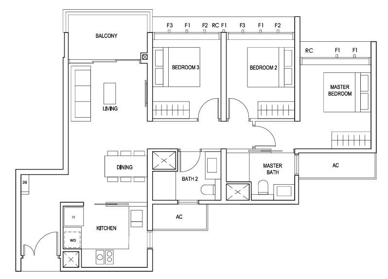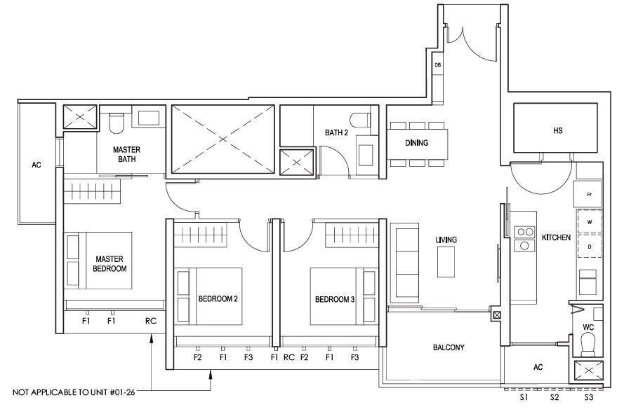 3 Bedroom + Study | 1173 - 1184 | 54 |