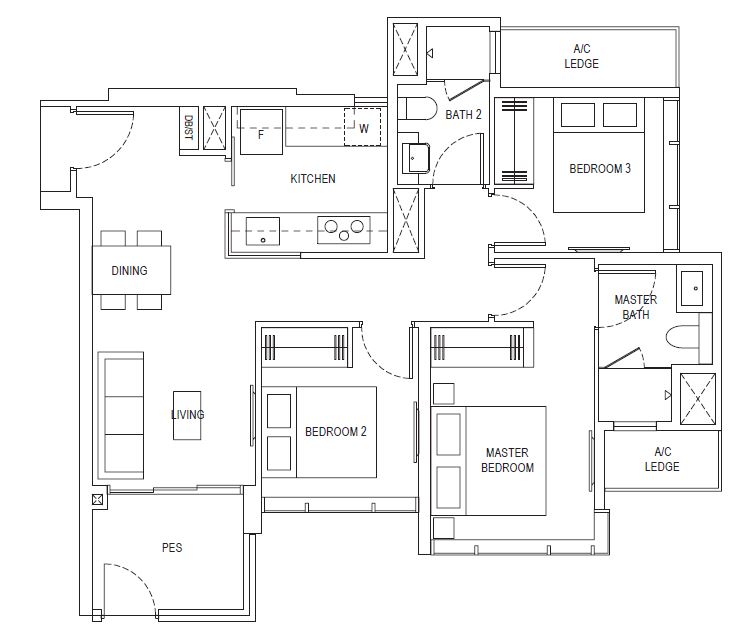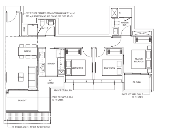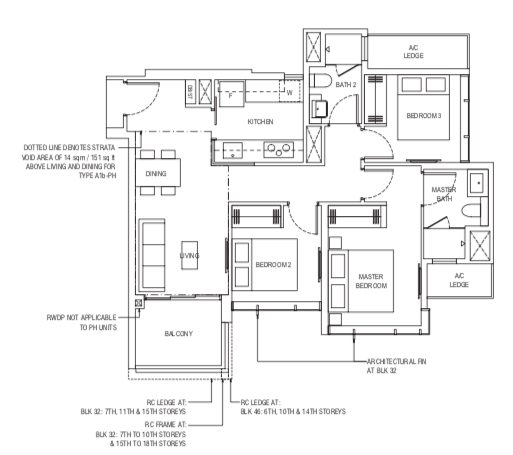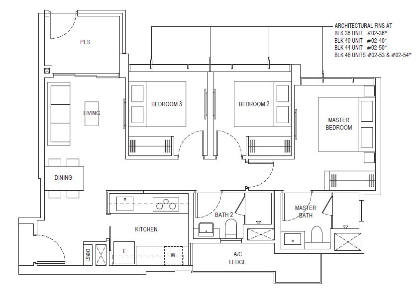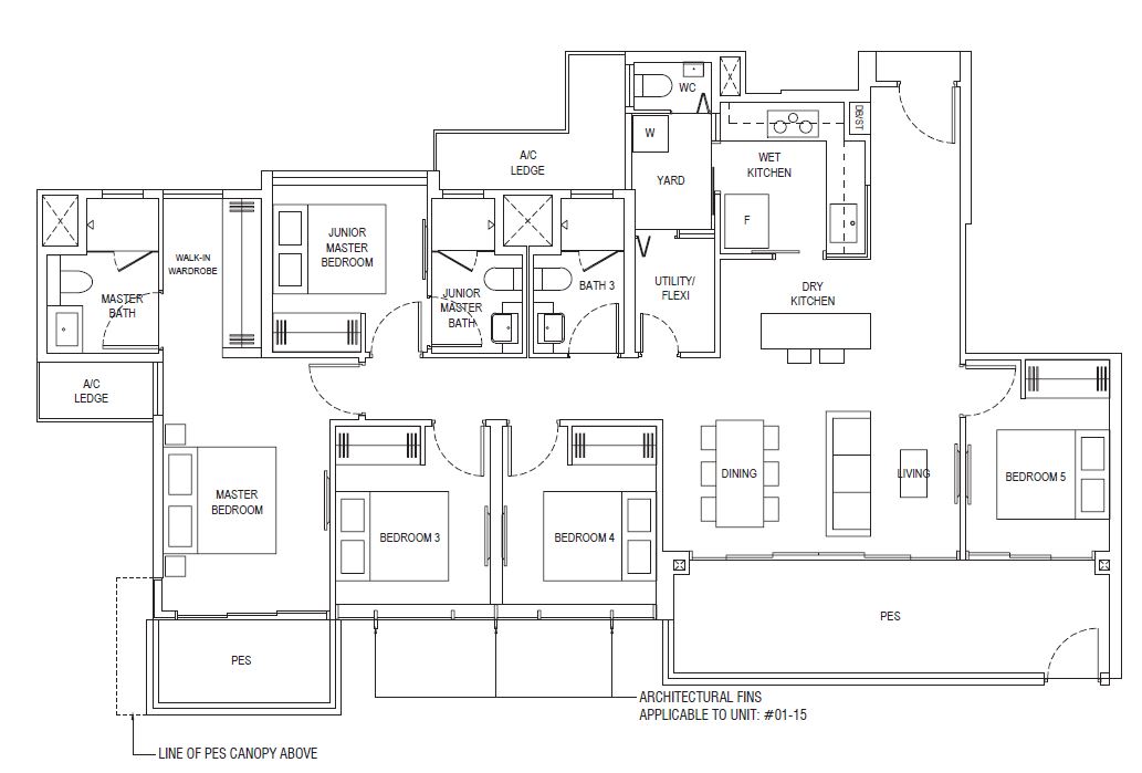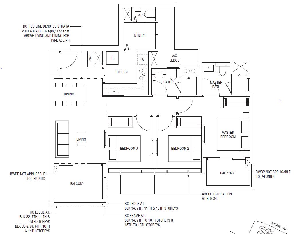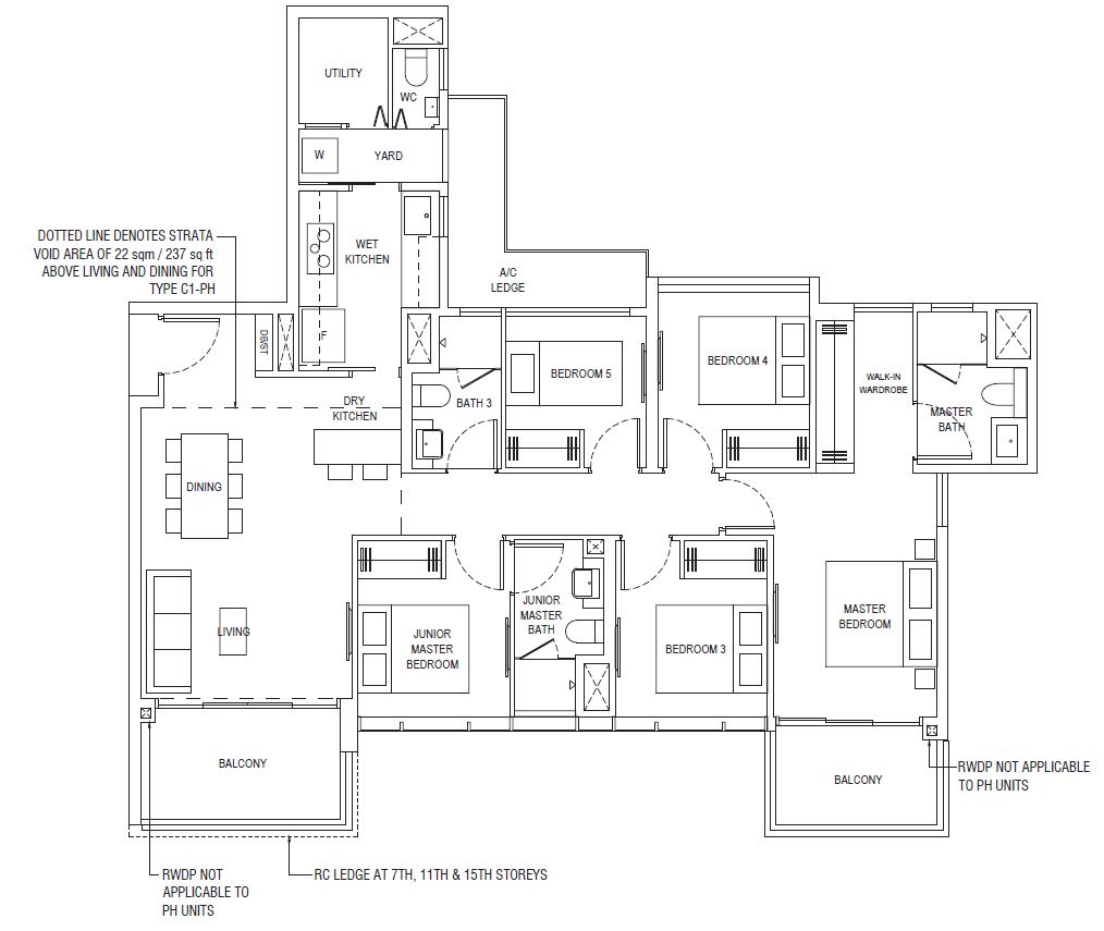 3 Bedroom Penthouse (D) | 1119 - 1163 | 5 |