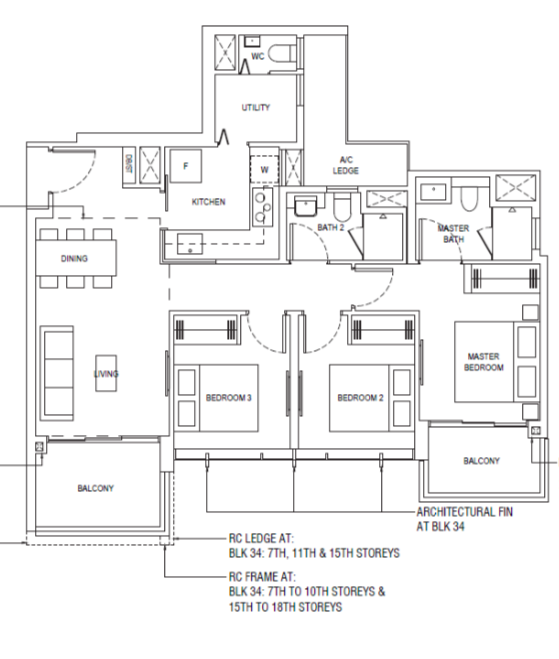 3 Bedroom (P) | 1184 - 1216 | 101 |