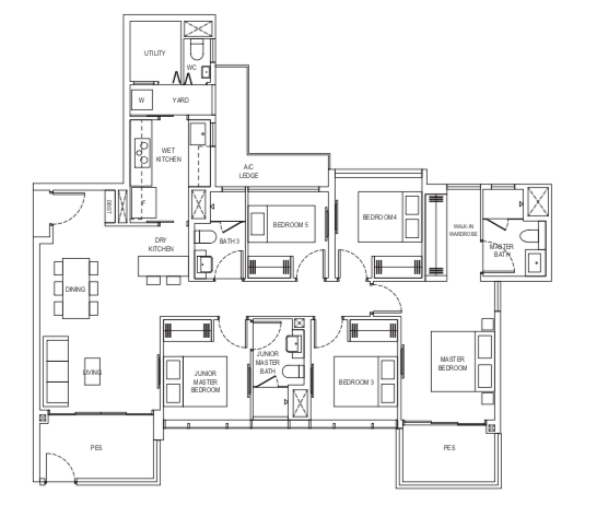 5 Bedroom Penthouse (P) | 1668 - 1701 | 6 |
