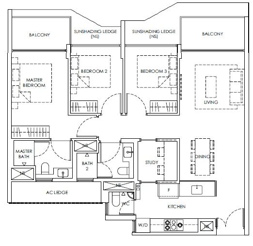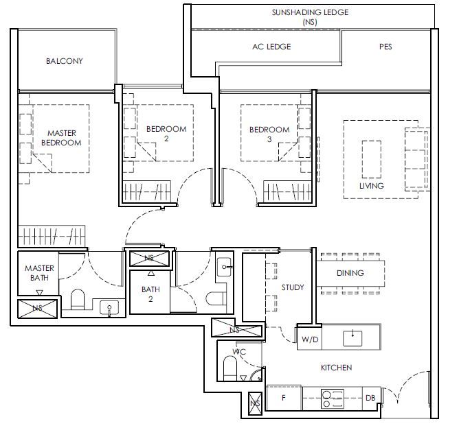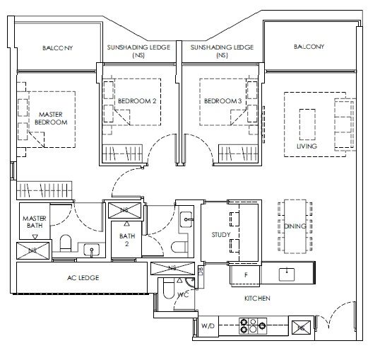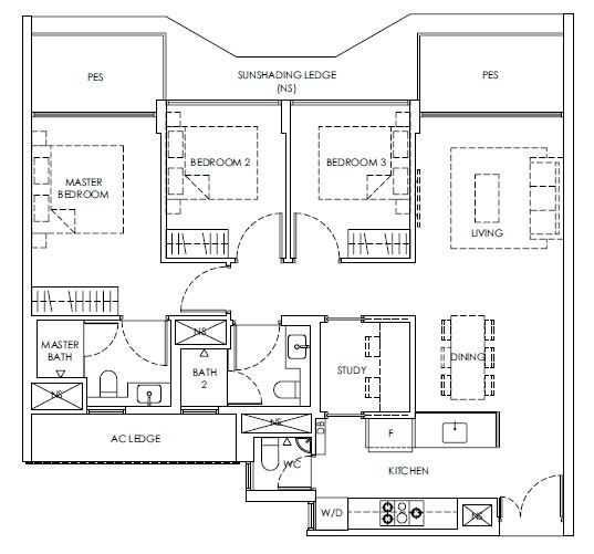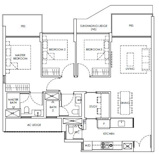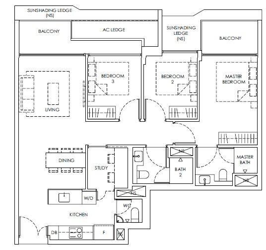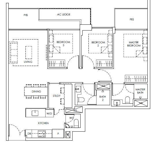 3 Bedroom + Study | 1066 - 1088 | 20 |