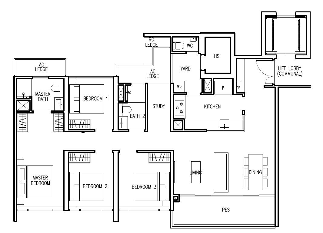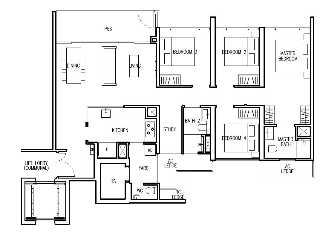 4 Bed + Study (P) | 1270 - 1464 | 27 |
