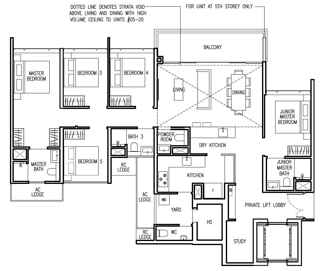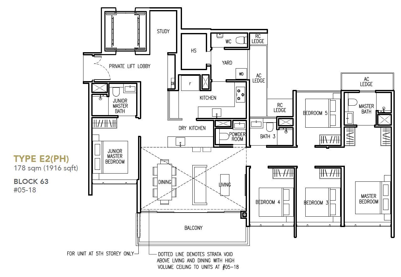 5 Bed + Study (E) | 1668 - 1905 | 10 |
