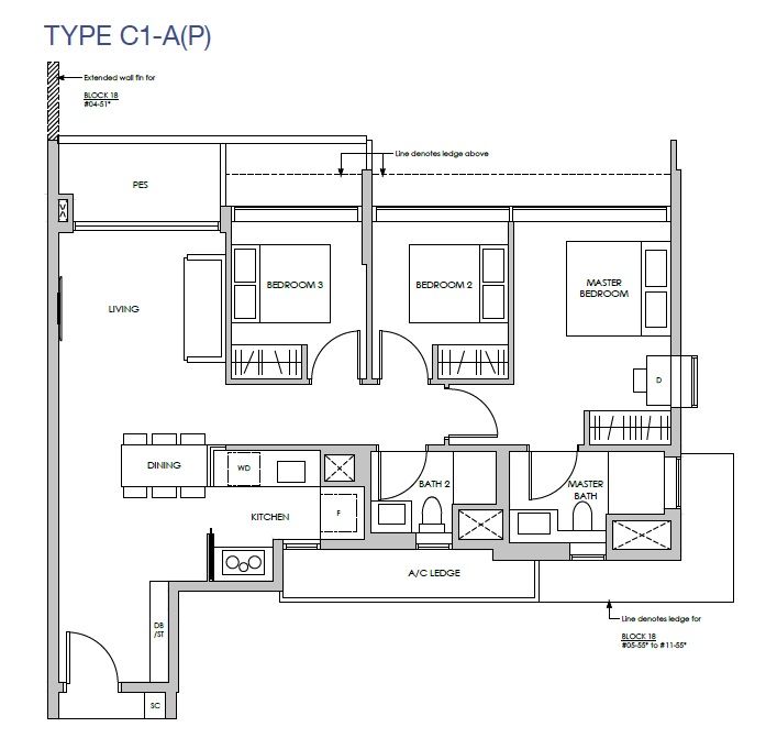 3 Bed + Guest (P) | 1259 - 1302 | 74 |
