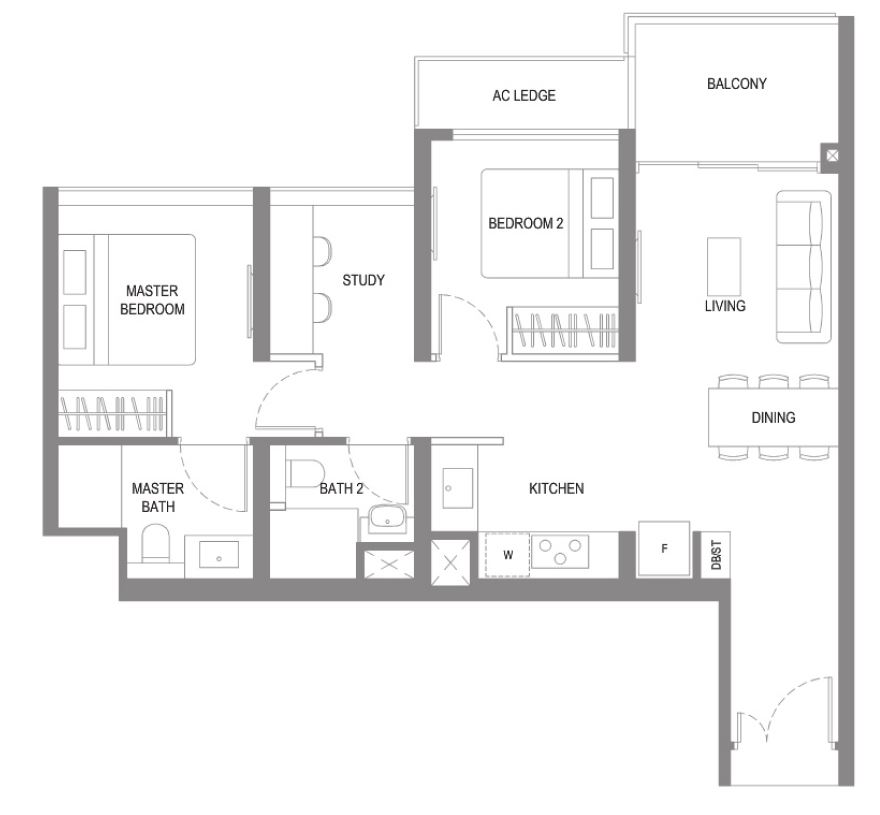 3 Bedroom+ Study | 1141 - 1184 | 69 |