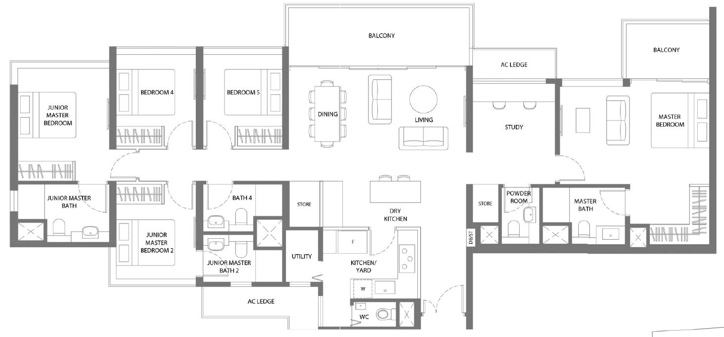 99 Yrs Leasehold 520 Units TOP Q4 2020 Height 36 Storey 1 Bed 1 + Study 2 Bed 2 + Study 3 Bed 3 + Study 4 Bed 4 + Study 5 Bed 5 + Study Shops