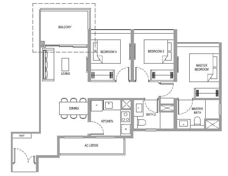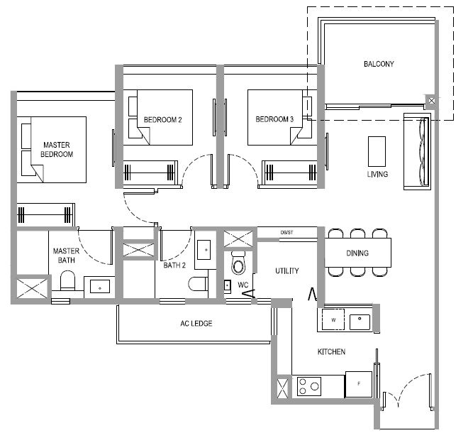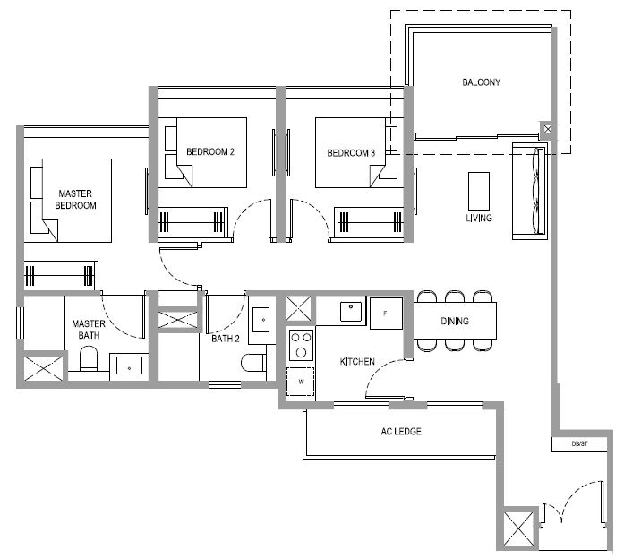 3 Bedroom (D) | 1001 - 1033 | 39 |