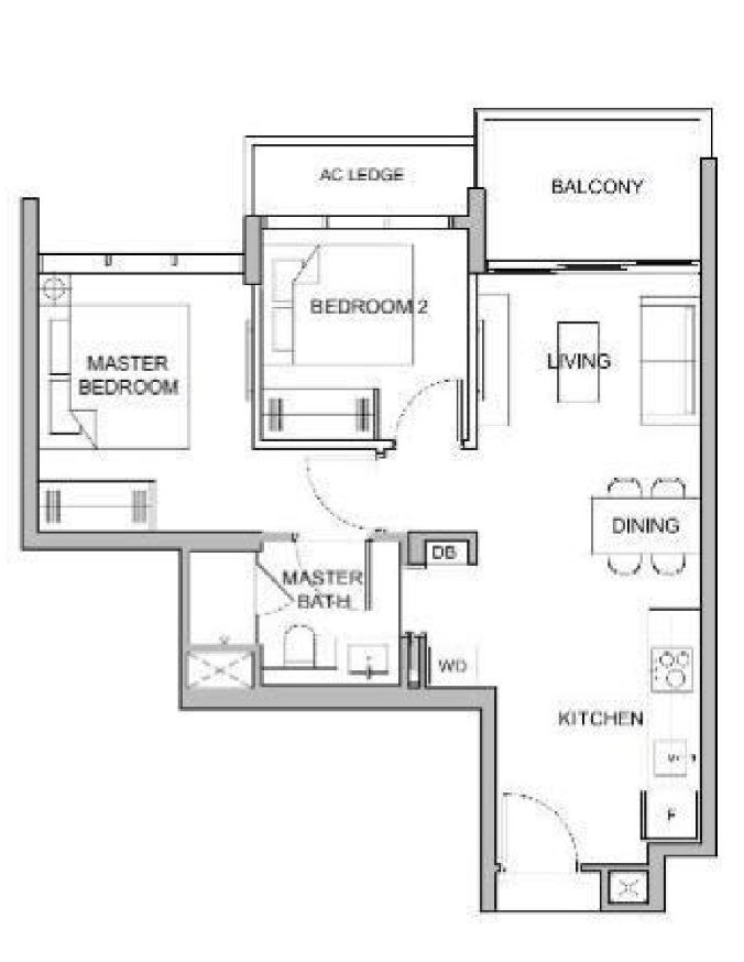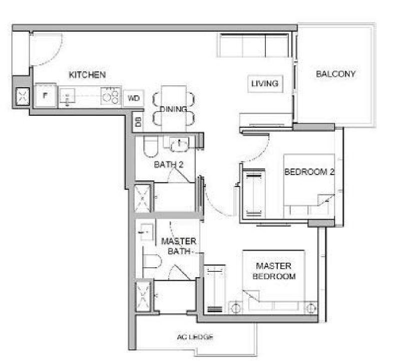 2 Bedroom + 1 Dual Key 1163 Sqft